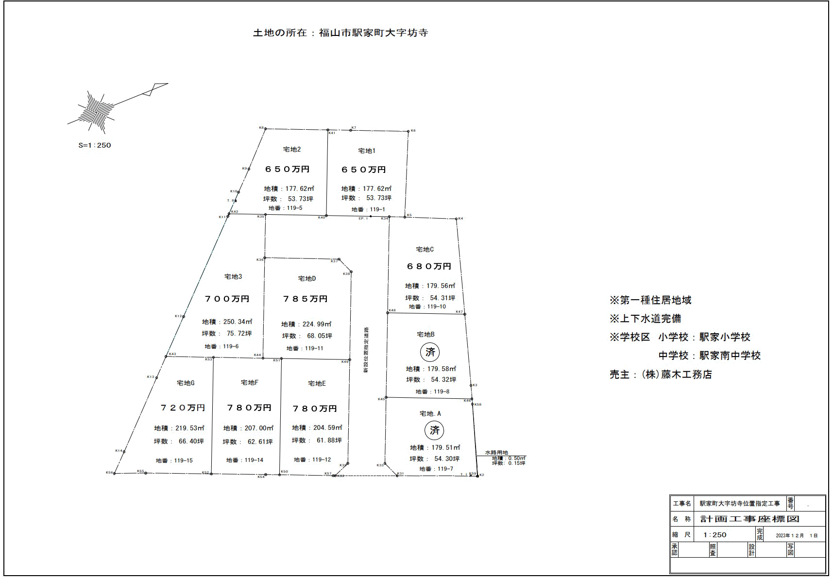 (宅地1) 650万円 177.62m²(53.73坪 ) |