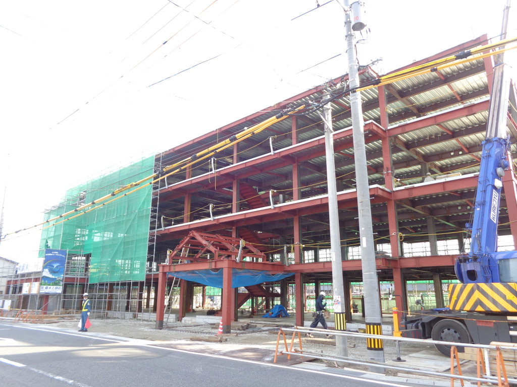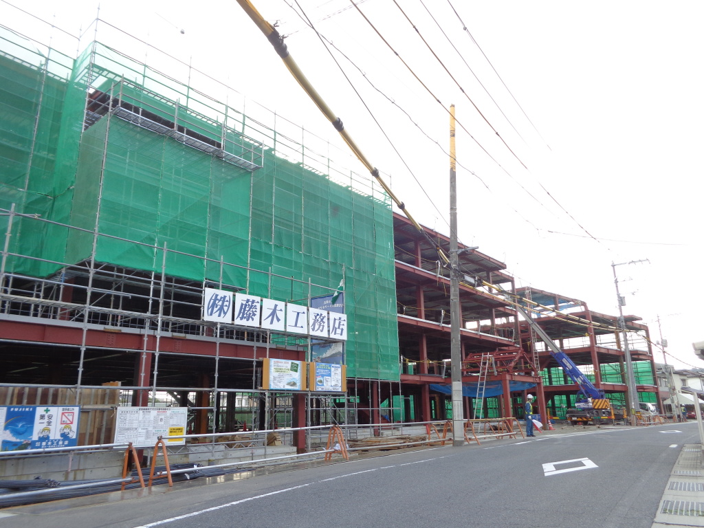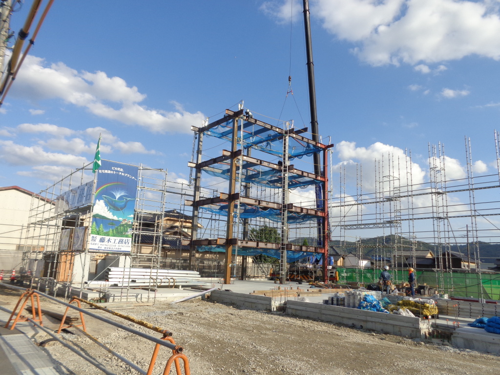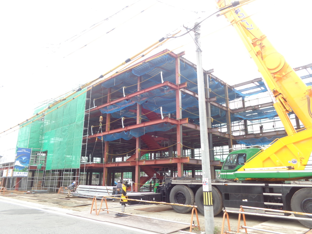 秋の気配を感じながら、鉄骨建方ほぼ完成です。
