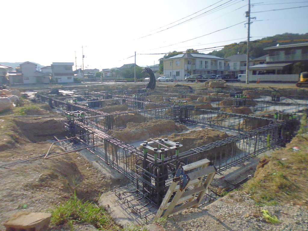 澄み渡る秋空の下で鉄骨建方始まりました。